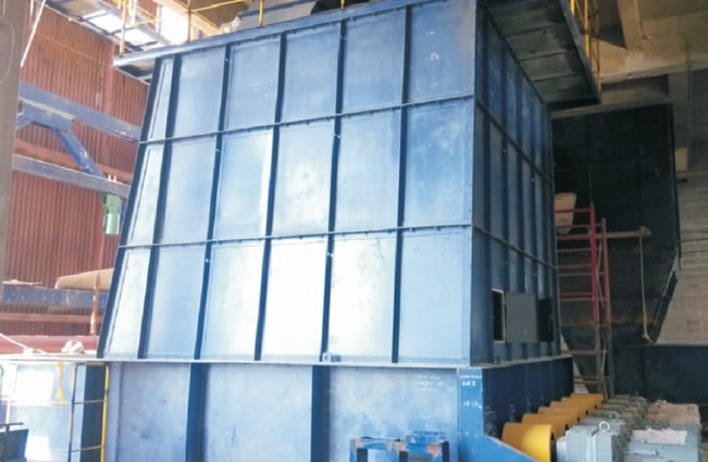 为秸秆输送设备和炉前给料设备之间的过渡设备,可以起到贮存、缓冲、配料的作用。可适用于软硬质秸秆。最大容积可达200m3,秸秆长度≤150mm。从皮带机输送来的物料通过料仓顶部的匀料器进入料仓,料仓底部装有螺旋卸料机。卸料机的卸料螺旋将仓内物料送出料仓。